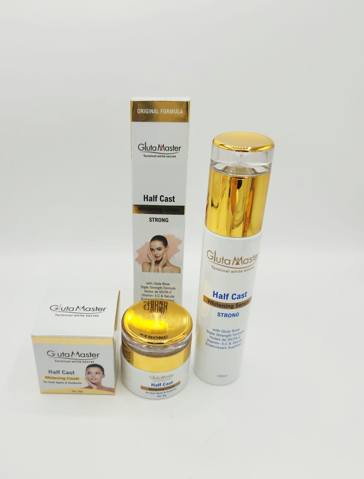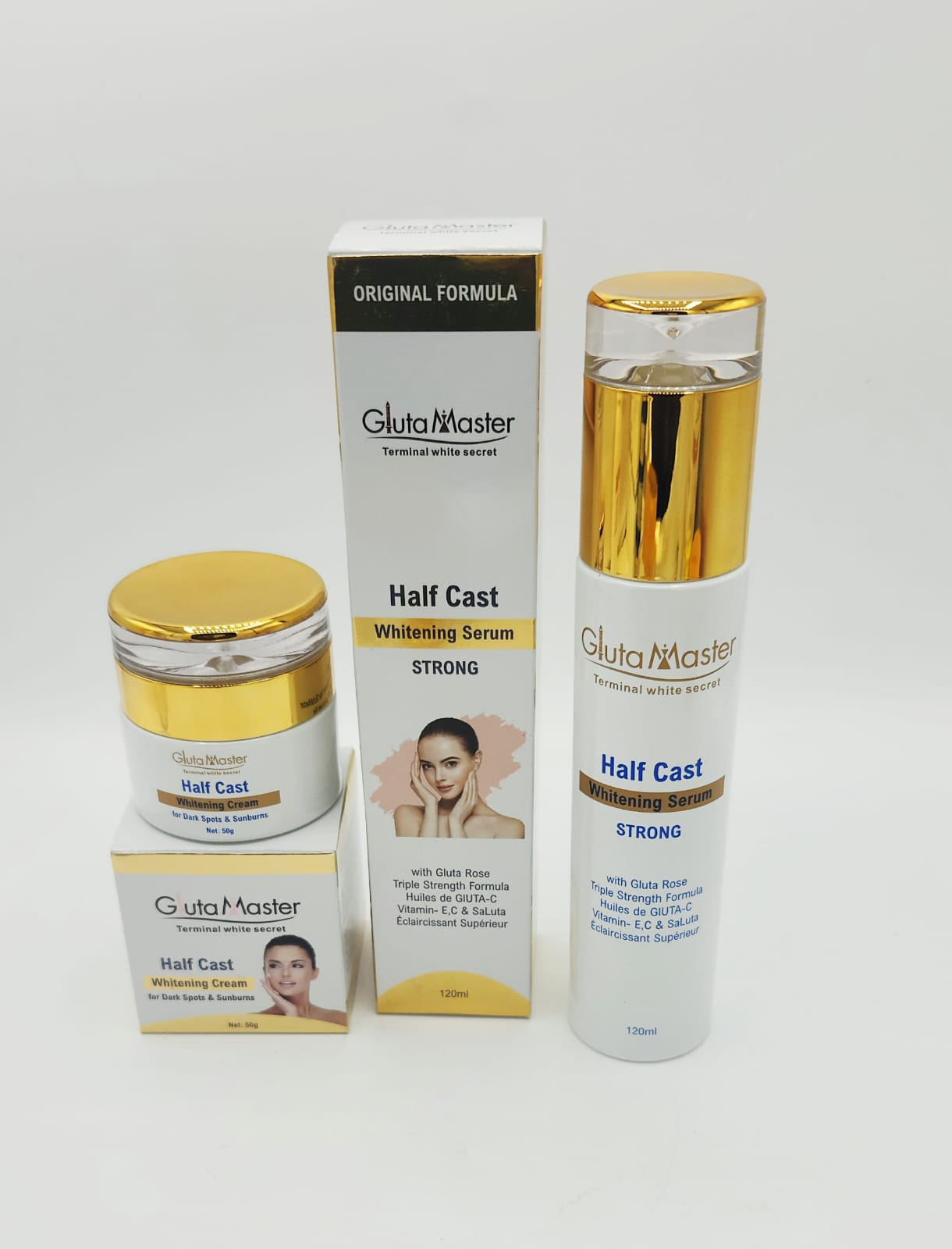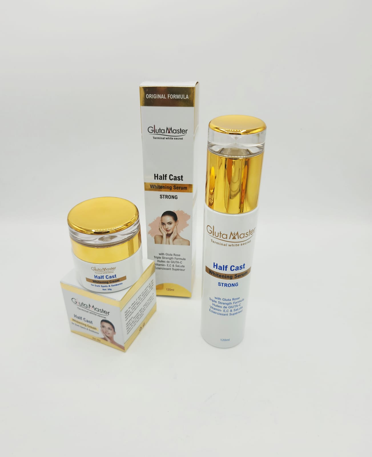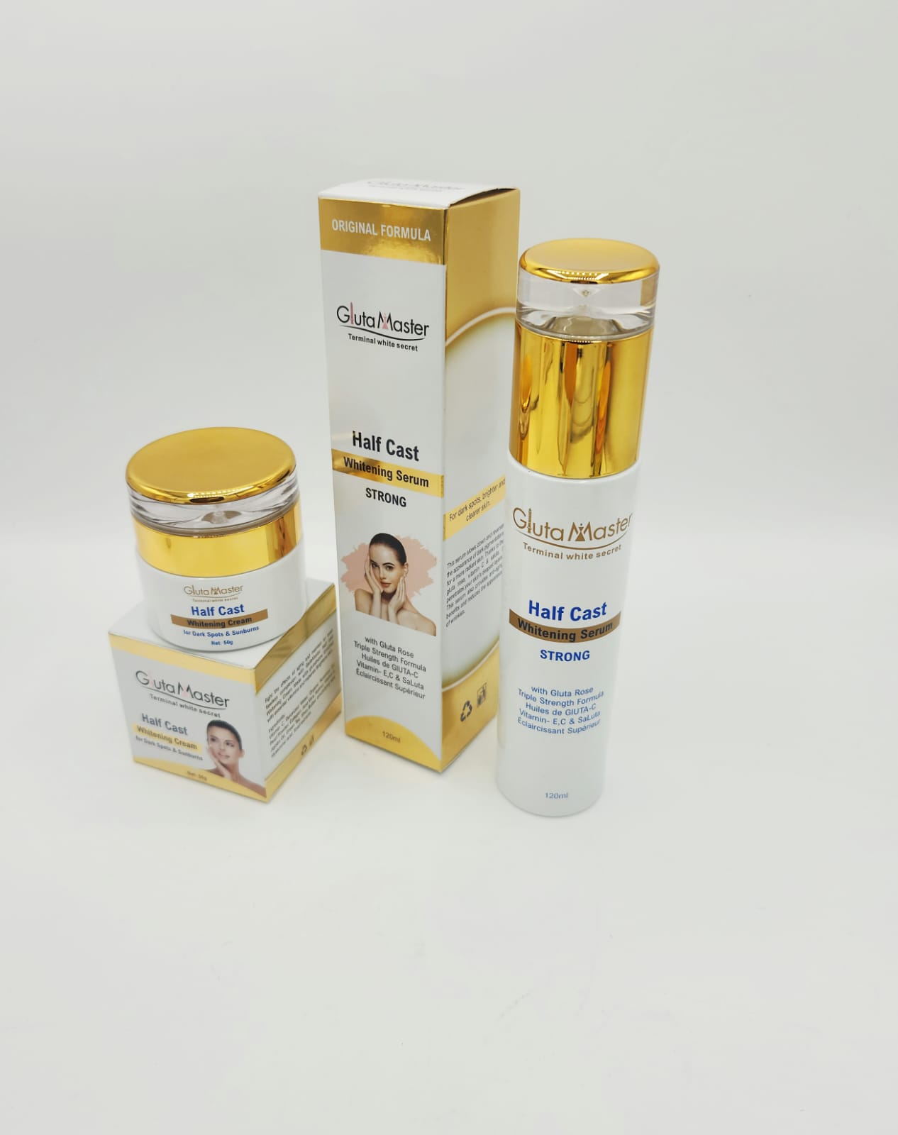 Offrez à votre peau un traitement intensif avec le duo Crème Éclaircissante Visage & Sérum Gluta Master Half Cast Terminal White. Formulés à base de glutathion et de collagène, ces deux soins travaillent en synergie pour offrir un éclat exceptionnel, une hydratation profonde et une unification du teint visible dès les premières semaines.