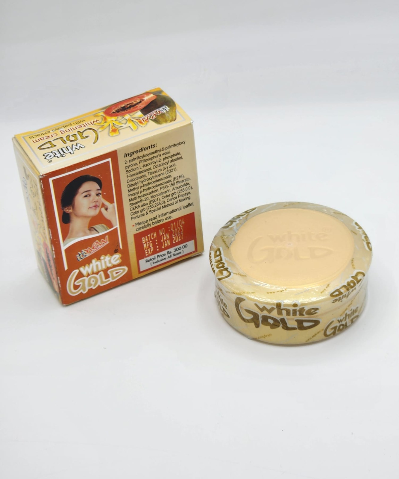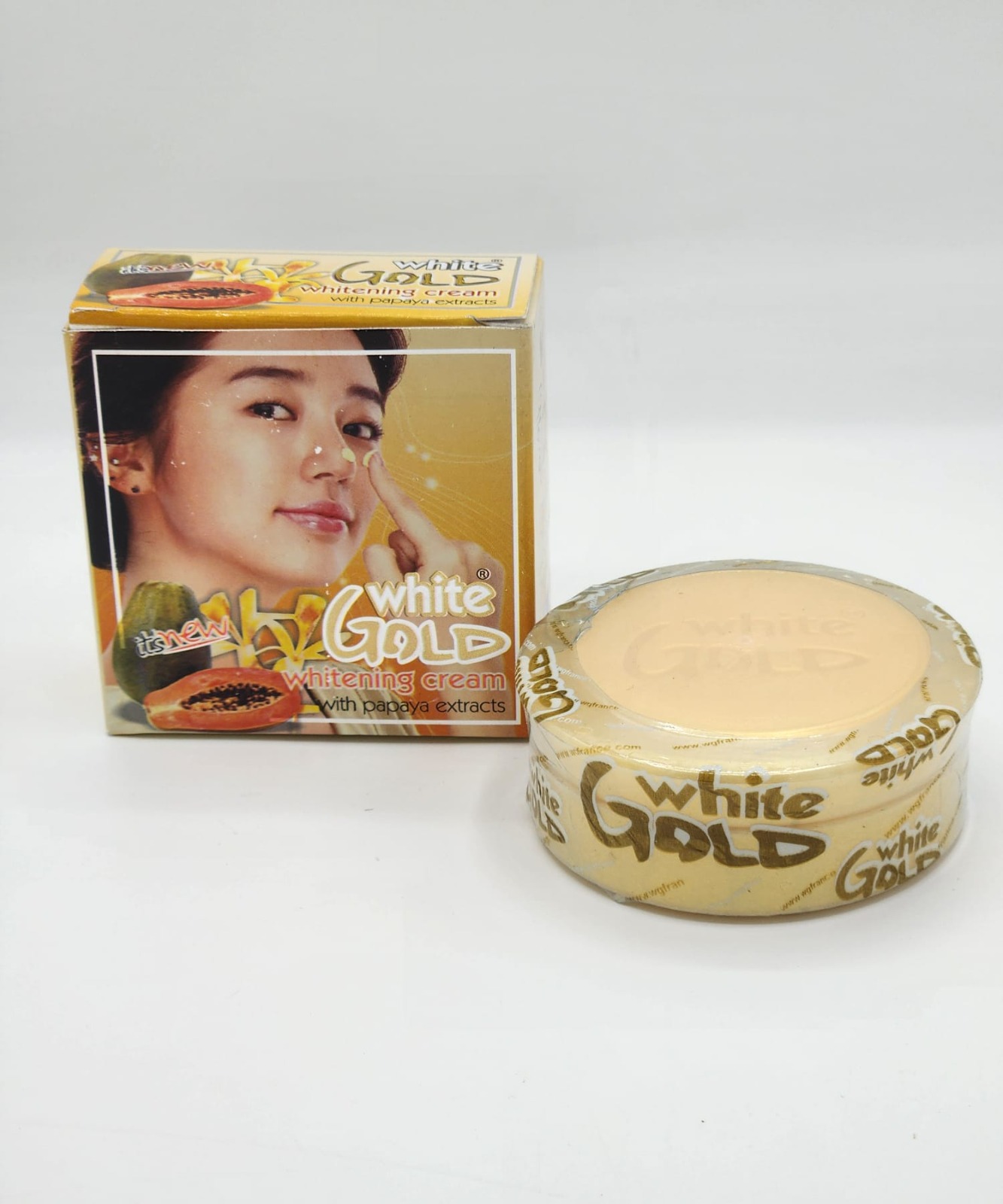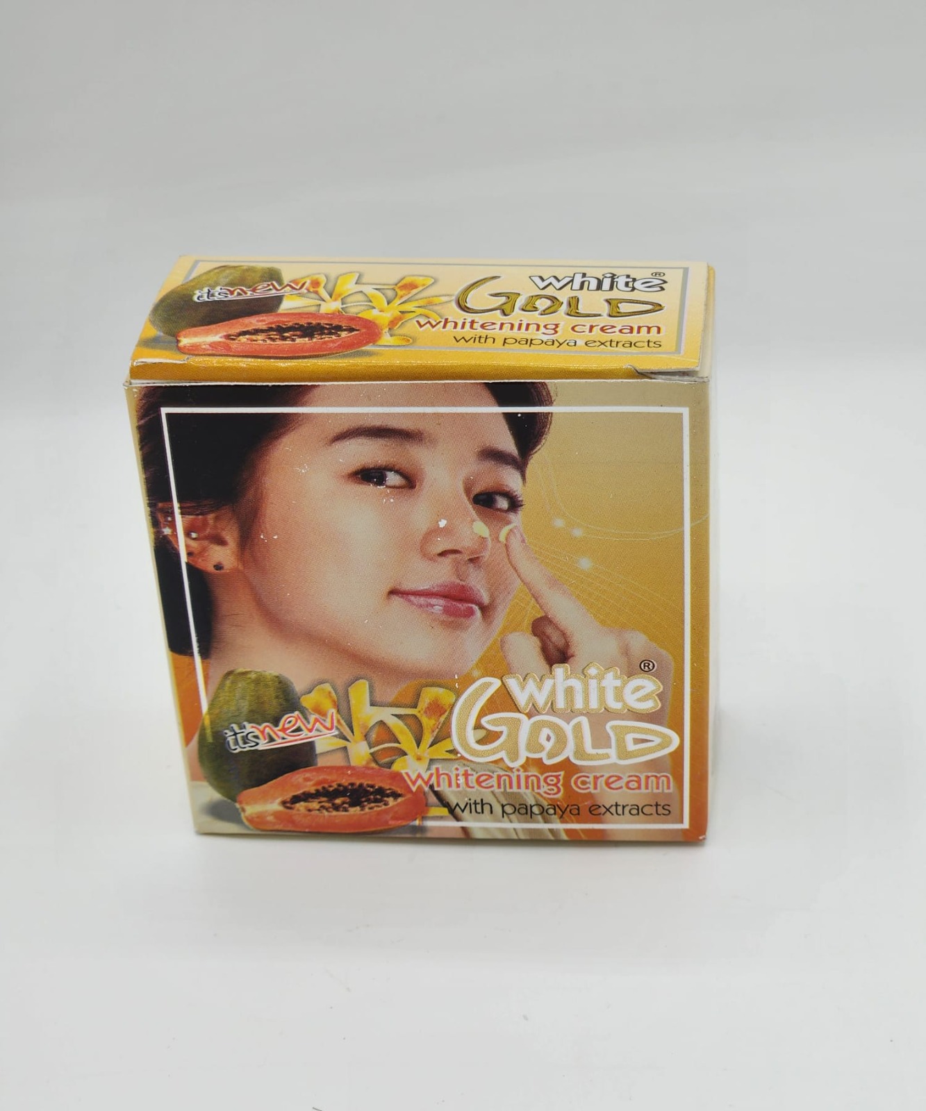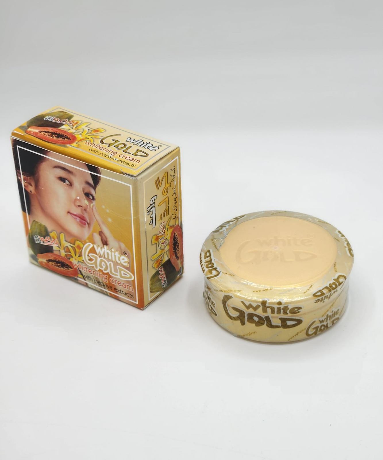 Contrairement aux crèmes agressives, la crème white gold exploite les enzymes naturels de la papaye(papaïne) pour exfolier en douceur, favoriser le renouvellement cellulaire et éliminer les cellules pigmentées en surface. Associée au niacinamide, elle inhibe la mélanine excédentaire, tandis que la vitamine C neutralise les radicaux libres responsables du teint terne. De plus, l’acide hyaluronique hydrate en profondeur pour une peau souple et rebondie. La formule est sans hydroquinone, sans parabènes, sans alcool asséchant et non testée sur les animaux—parce que la beauté commence par le respect.