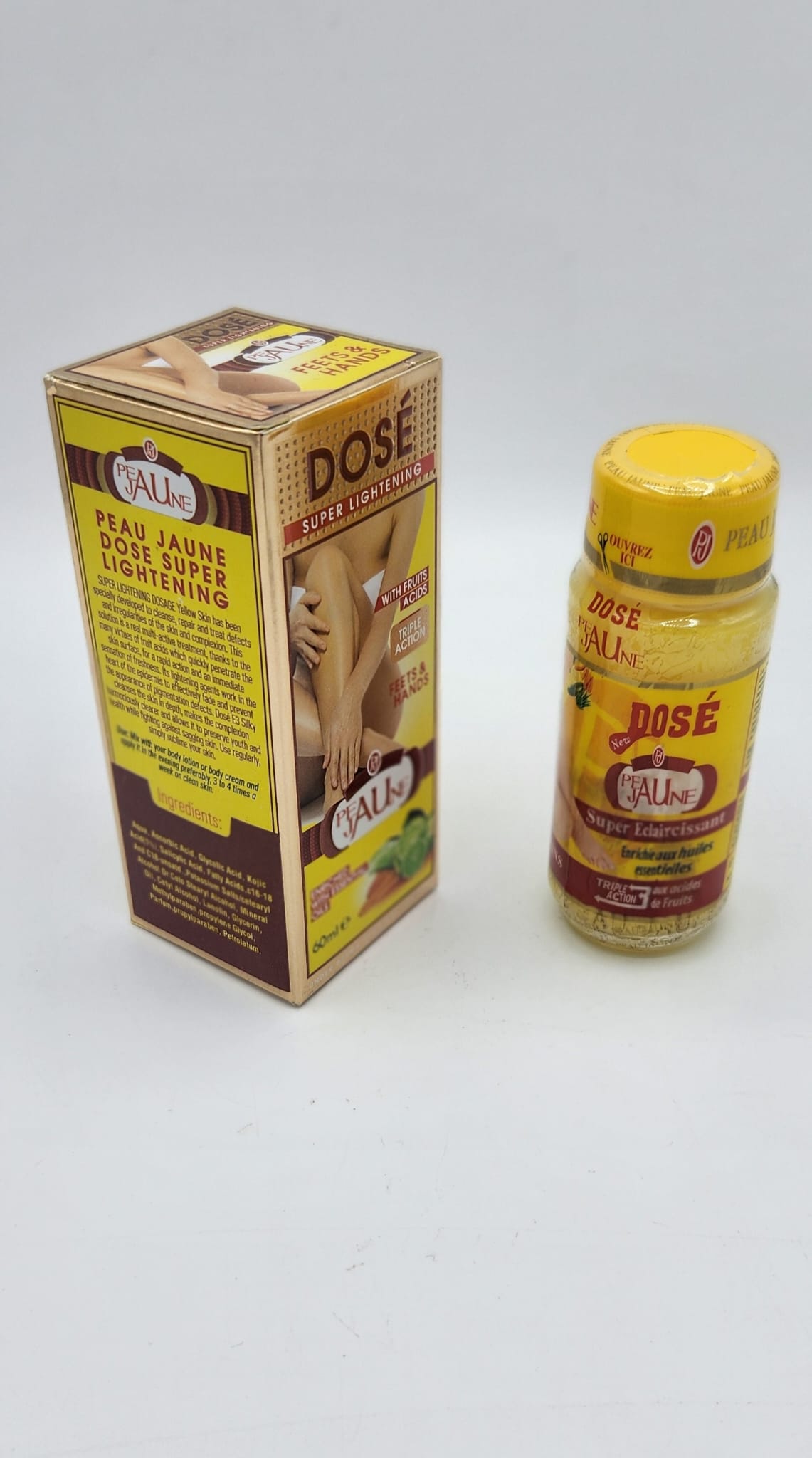 Contrairement aux produits génériques qui uniformisent mal les sous-tons jaunes, le dosé super éclaircissante respecte la nature unique de ces peaux : il n’assèche pas, ne laisse pas de reflet blanc et ne provoque pas d’irritation. Au contraire, il révèle un éclat naturel et sain, sans artifice. De plus, l’ajout d’un FPSoffre une protection quotidienne contre les UV, principale cause du vieillissement prématuré et des nouvelles taches. La formule est sans parabènes, sans alcool, sans colorants artificiels et non testée sur les animaux—parce que chaque teint mérite d’être respecté.