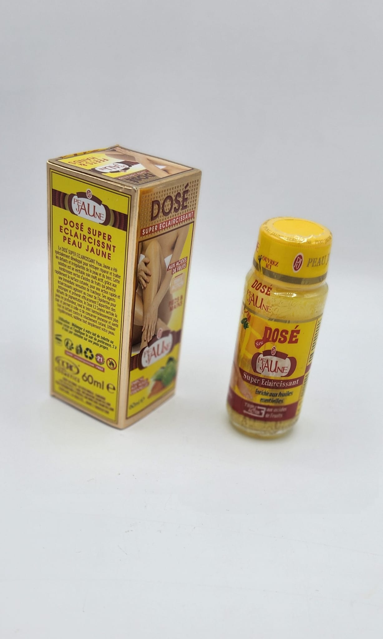 Le dosé super éclaircissante peau jaune est une formule spécialement conçue pour les carnations jaunes, olivâtres ou asiatiques souvent confrontées à un teint terne, aux taches solaires ou à l’hyperpigmentation post-inflammatoire. Enrichi en niacinamide pur à 5 %, acide tranexaminique, extrait de réglisse bio et un filtre solaire léger (FPS), ce soin pénètre rapidement pour unifier le teint, atténuer les zones pigmentées et protéger contre les agressions quotidiennes—le tout sans hydroquinone ni ingrédients irritants. En outre, il convient parfaitement aux peaux sensibles et peut s’utiliser matin et soir pour des résultats visibles en seulement 2 à 3 semaines.