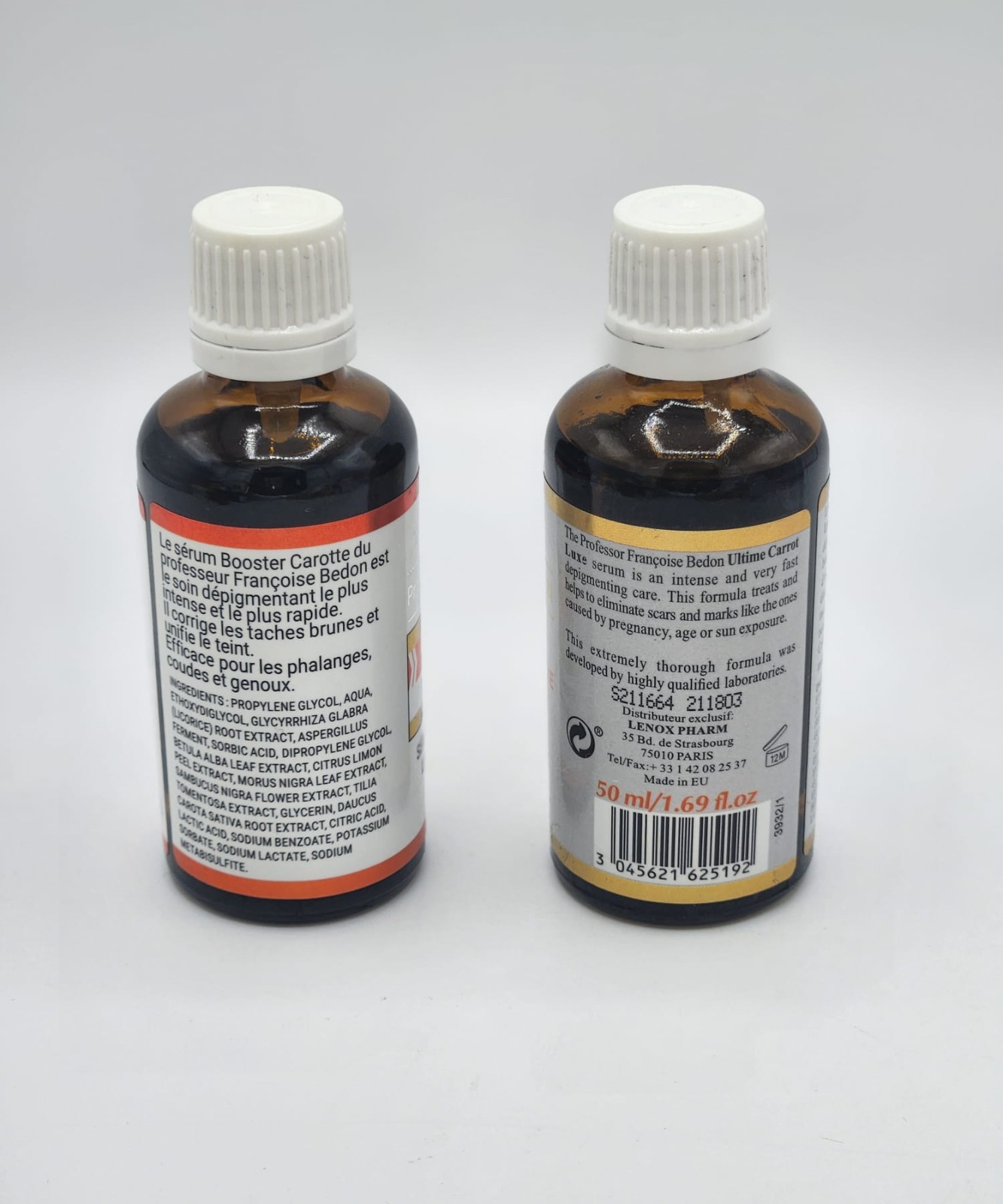 DUO Pr. Françoise Bedon Sérum BOOSTER  CAROTTE  ET ULTIM CAROTTE Maximum Efficiency. Sérum éclaircissant. 50ML X 2