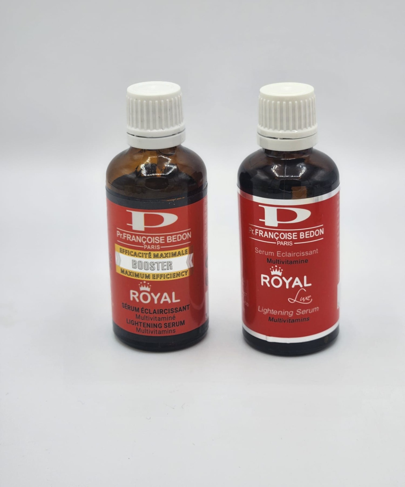 Par ailleurs, ce duo s’intègre parfaitement dans une routine quotidienne : appliquez le Booster Royal le matin sous votre crème pour un teint radieux, et le Royal Maximum Efficiency le soir pour une régénération nocturne ciblée. Il est particulièrement recommandé pour les peaux matures, fatiguées ou exposées à des agressions fréquentes.