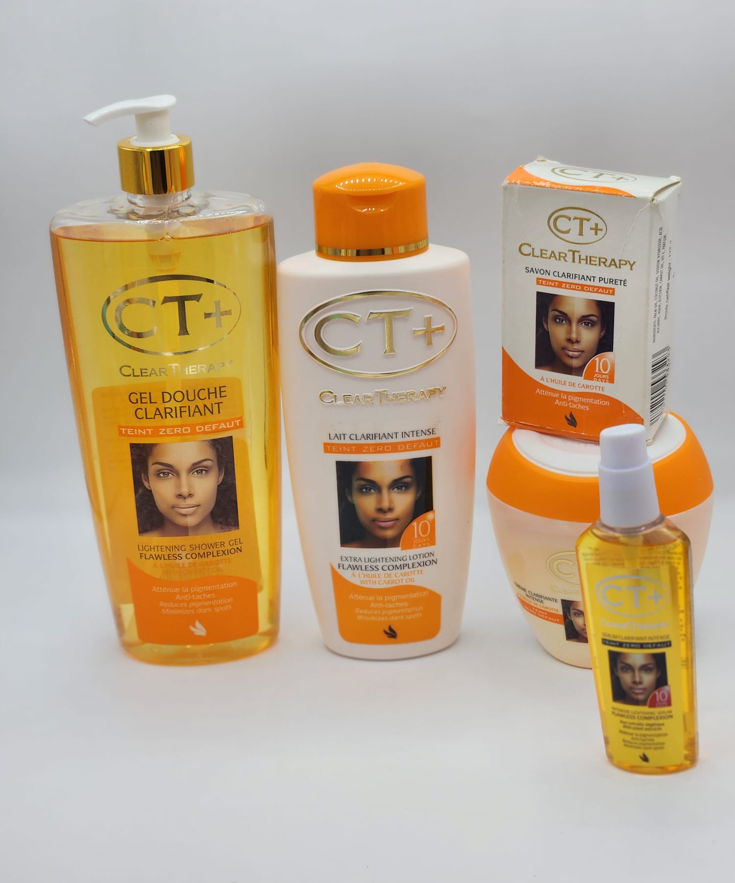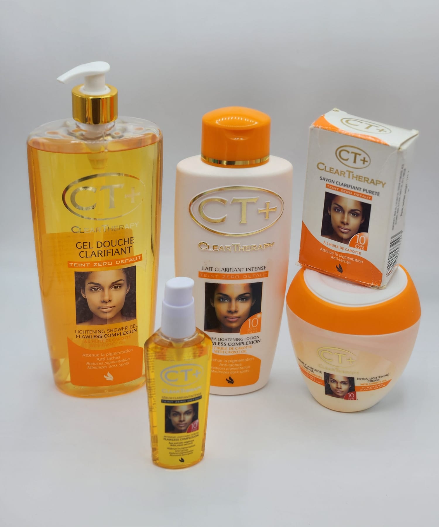 En résumé, la gamme CT+ Clear Therapy est votre alliée incontournable pour atteindre un teint radieux et uniforme. Avec des produits formidables comme le gel douche clarifiant, le lait clarifiant, le savon purifiant, la crème hydratante et le spray éclaircissant, vous avez tous les outils nécessaires pour transformer votre routine de soins de la peau. Faites le choix de la qualité et offrez à votre peau l’éclat qu’elle mérite. Essayez CT+ Clear Therapy aujourd’hui et découvrez la différence par vous-même !
