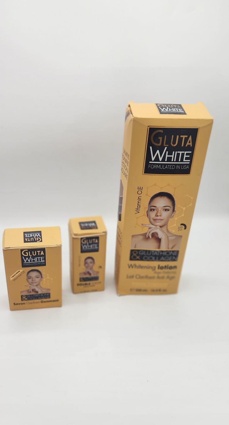 Offrez à votre peau un rituel de soin complet avec le lot de 3 produits GLUTA WHITE Hyper Éclaircissant Clarifiant Anti-Âge & Anti-Tache. Cette gamme puissante associe lait corporel, sérum visage et savon éclaircissant, pour un résultat rapide et visible sur tous types de peau.