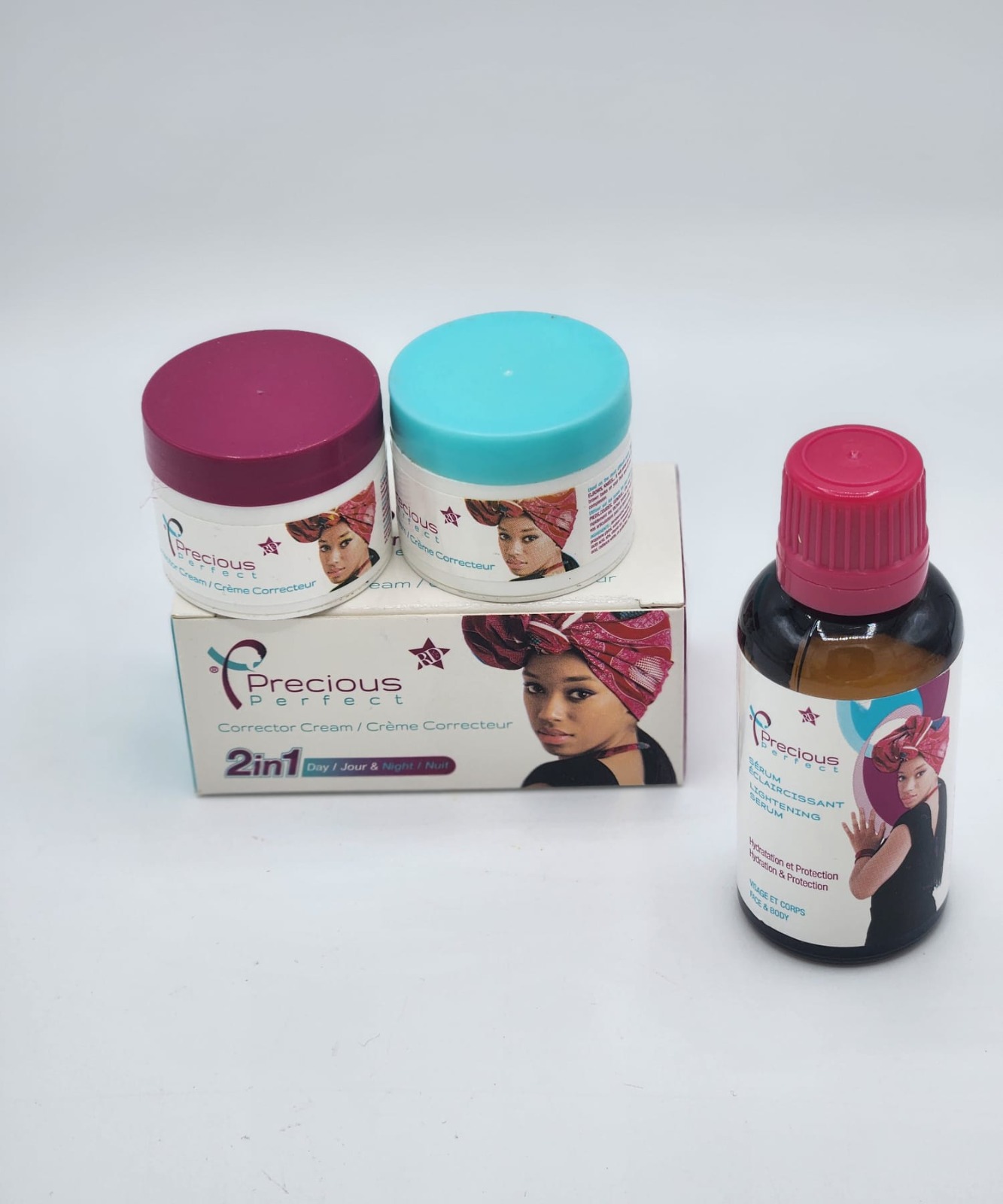 Le duo precious perfect réunit un sérum concentré et une crème nourrissante, tous deux enrichis en niacinamide pur à 5 %, acide hyaluronique multi-poids, vitamine E naturelle et extrait de camomille bio. Spécialement conçu pour le visage et le corps, ce duo pénètre en synergie pour atténuer les taches pigmentaires, hydrater intensément et protéger contre les agressions quotidiennes—le tout sans hydroquinone ni ingrédients irritants. En outre, il convient à tous les types de peau, y compris les plus sensibles, et délivre des résultats visibles en seulement 14 à 21 jours.