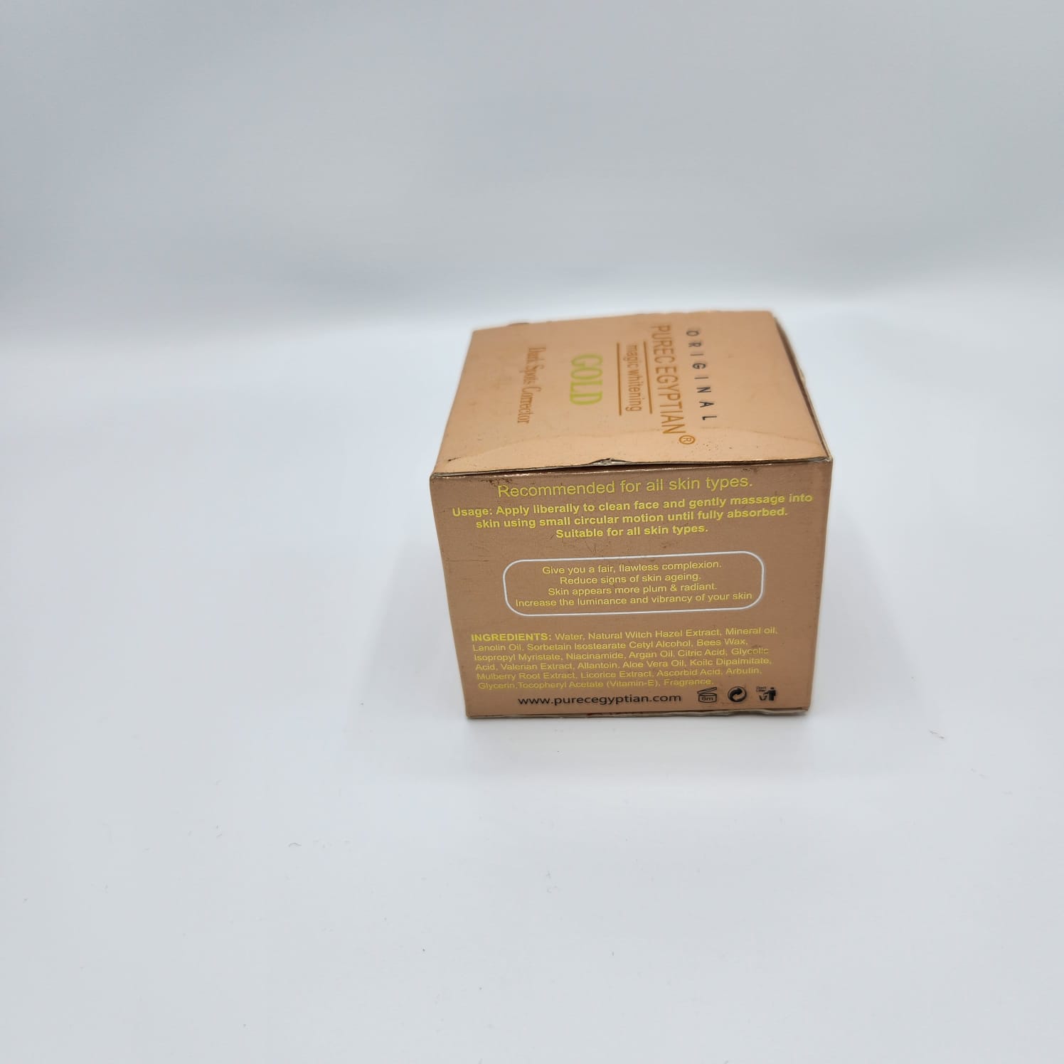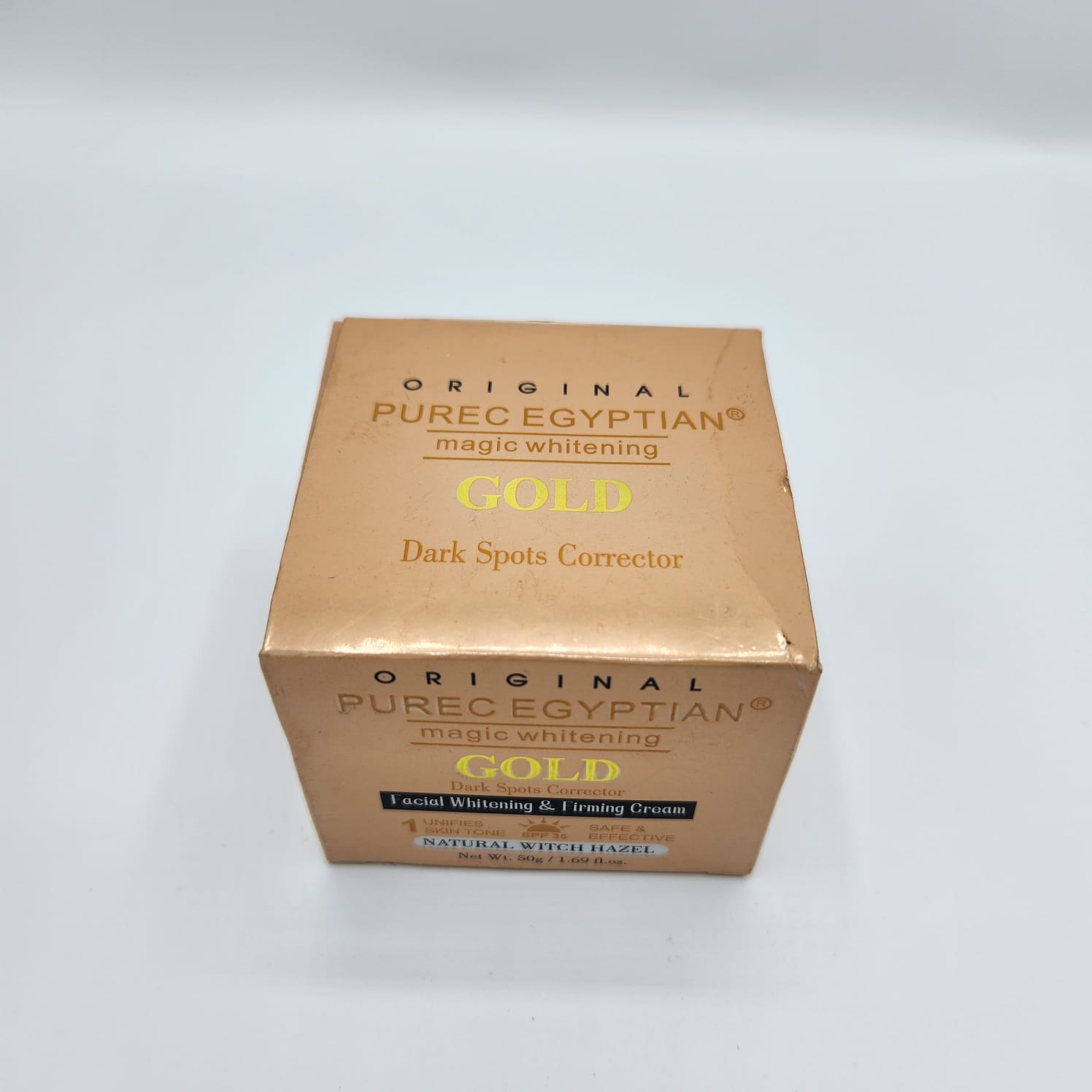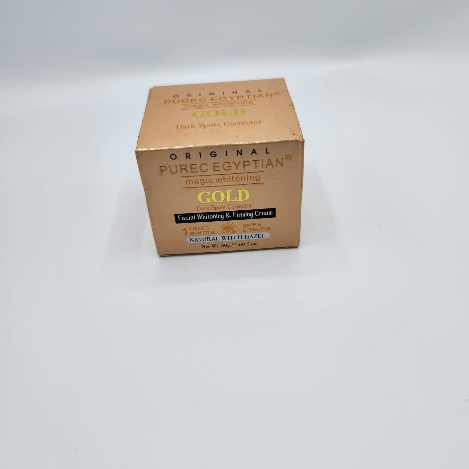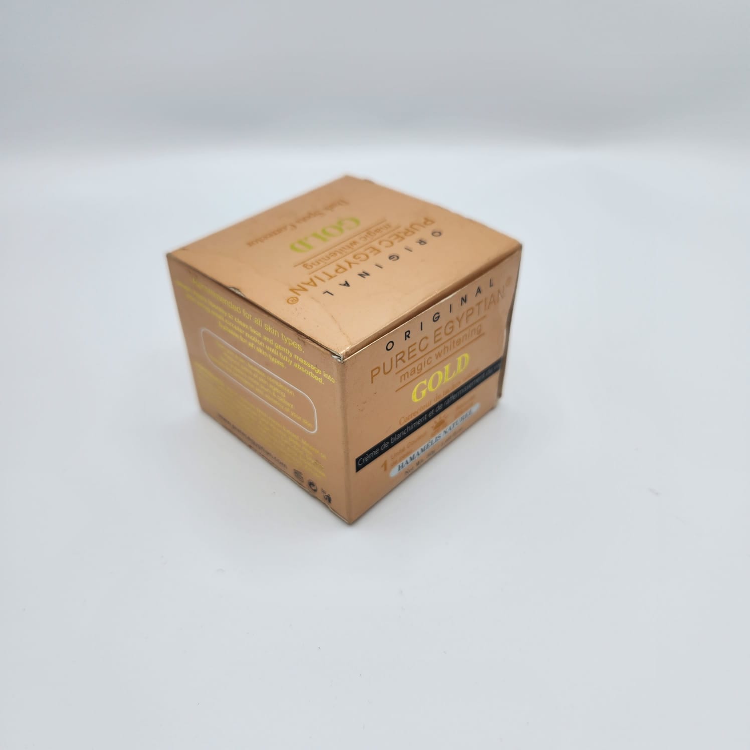 La Crème Éclaircissante Magique Gold Purec Egyptian est un soin intensif spécialement conçu pour offrir à votre peau un teint lumineux, uniforme et éclatant. Cette crème précieuse agit aussi bien sur le visage que sur le corps, corrigeant les taches brunes, les zones sombres et les irrégularités cutanées grâce à sa formule enrichie en or pur, glutathione et extraits végétaux naturels.