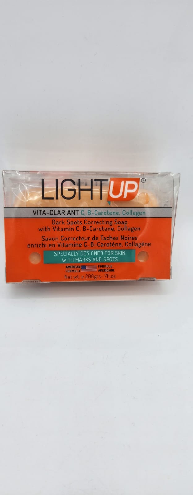 Le Savon Light Up Correcteur de Taches Noires est un soin nettoyant intensif spécialement formulé pour éclaircir, purifier et corriger les irrégularités pigmentaires de tous types de peaux. Grâce à sa formule enrichie en actifs éclaircissants, il agit efficacement contre les taches sombres, les cicatrices, et les imperfections.